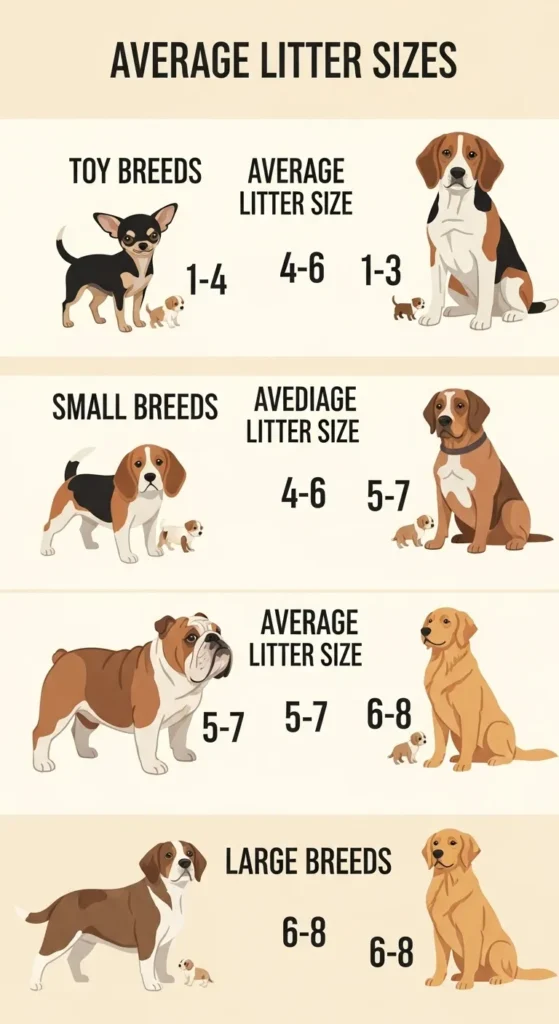 The size of litter is used to refer to the number of puppies born per pregnancy. The litter size of dogs can vary significantly, depending on breed, size, health, and previous reproductive history.