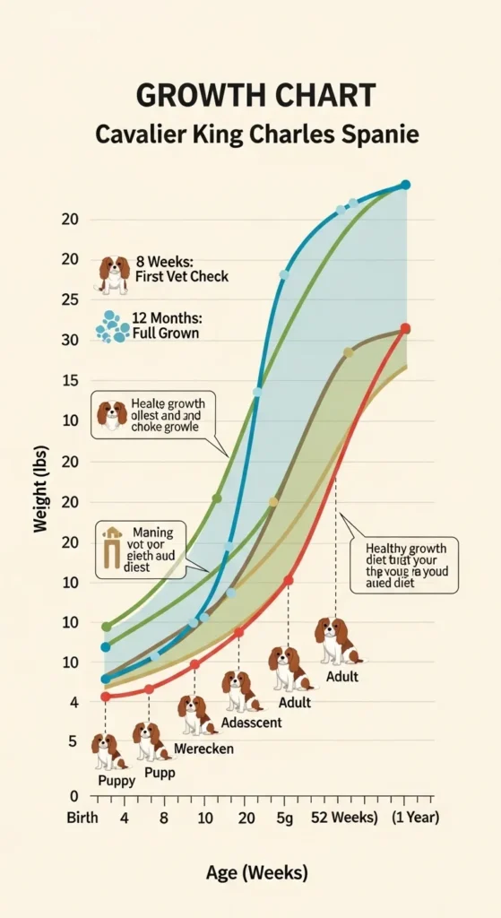 Cavaliers are on average full adult height and weight at 12-18 months, though some still put on weight until they are two. Knowing these growth phases will help the pet owners to adapt feeding, training, and visits to the veterinarian.