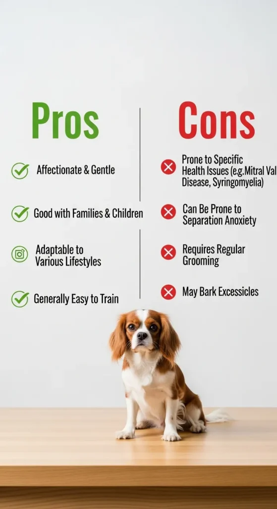 Each breed possesses weaknesses and advantages. The Cavalier is a great family dog due to his loving personality and flexibility, but his genetic health predispositions, emotional sensitivity, and grooming requirements must be given special attention.
