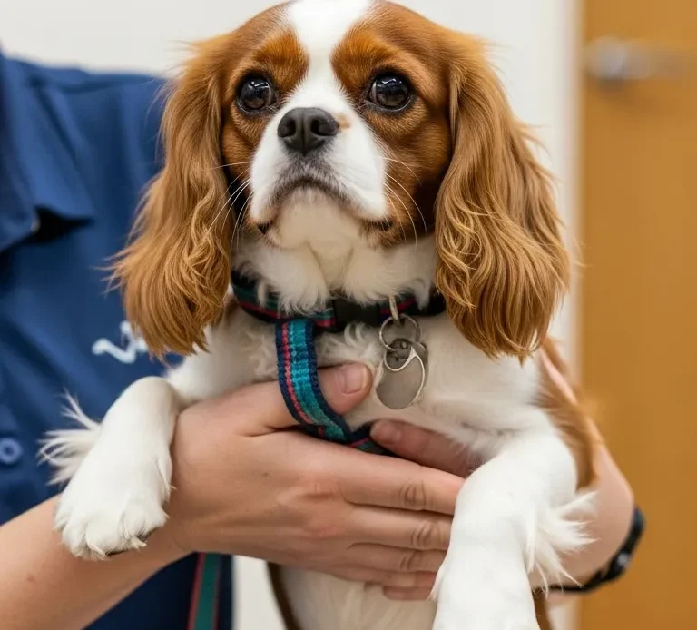 - Back or Neck Problems (Syringomyelia or Disc Issues): Cavaliers are also prone to syringomyelia, which is a painful spinal disease that leads to the formation of fluid-filled cavities around the brain or the spine. This may result in sensitivity to touch around the neck or back. In the same way, intervertebral disc disease (IVDD) may be the cause of acute pain during lifting.