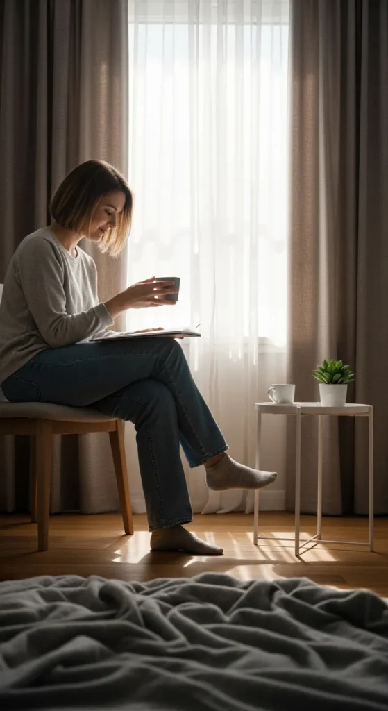 - Take up your keys or take off your shoes, and sit down.