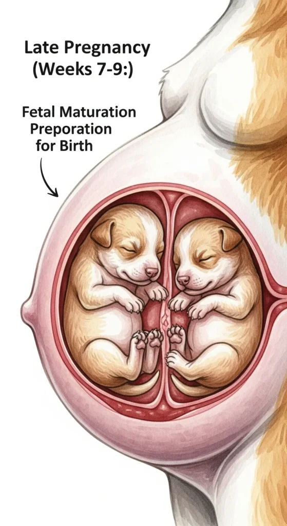 During this period, she is ready to give birth since her body is ready as a result of hormonal, physical, and behavioral changes. Every fetal stage, from fertilization to delivery, is crucial in the development of a healthy puppy.