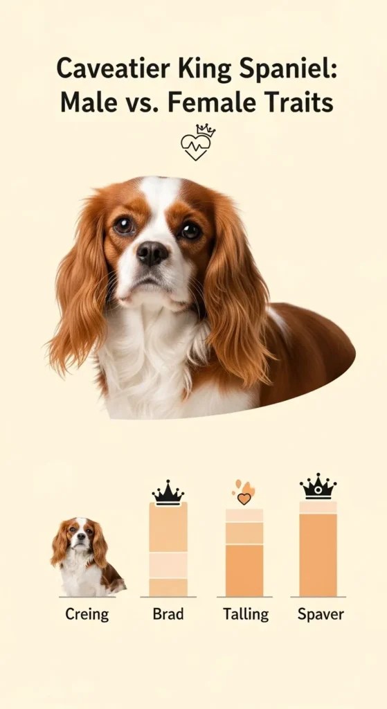 The following are the most distinguishable characteristics of male and female Cavalier King Charles Spaniels to their owners and breeders: