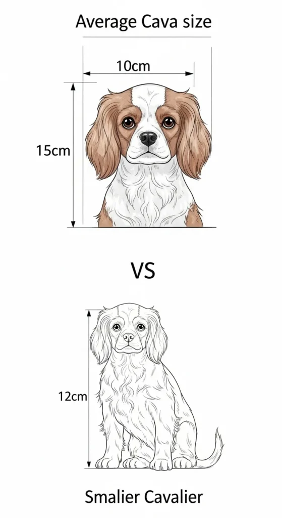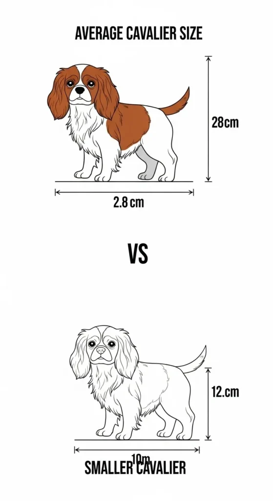 A small Cavalier King Charles Spaniel is normally a dog that weighs less or is shorter than the breed standard.